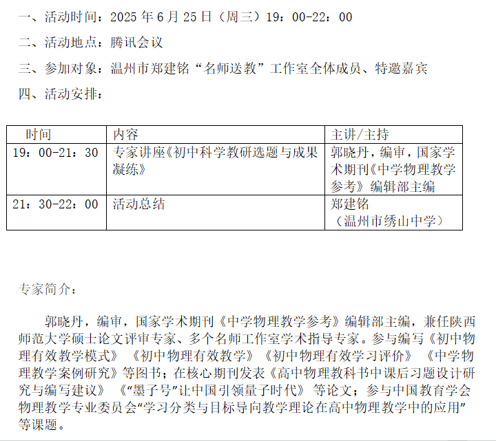 关于举行温州市郑建铭“名师送教”工作室第7次活动的通知