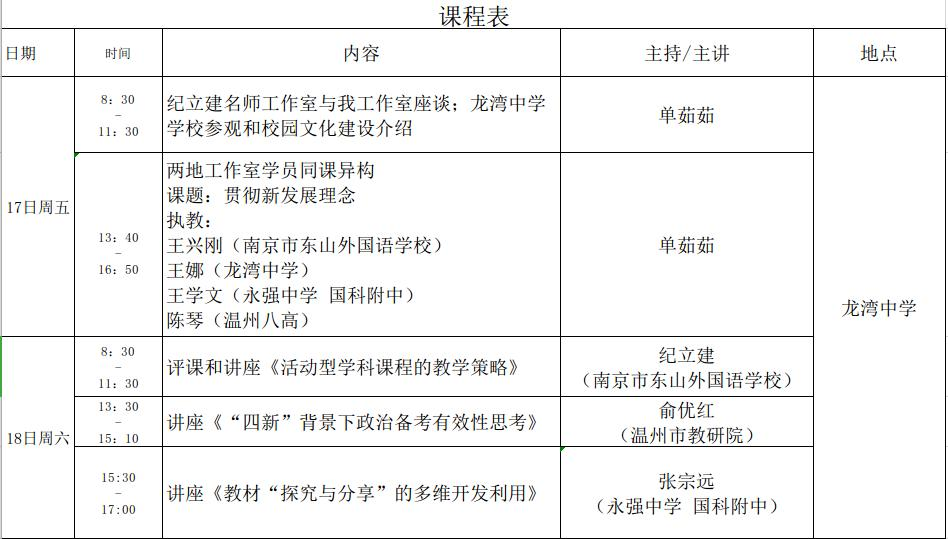 内容:新课程新教材实施专题讲座;两地工作室学员同课异构;两地工作室课改热点问题研讨和经验交流等