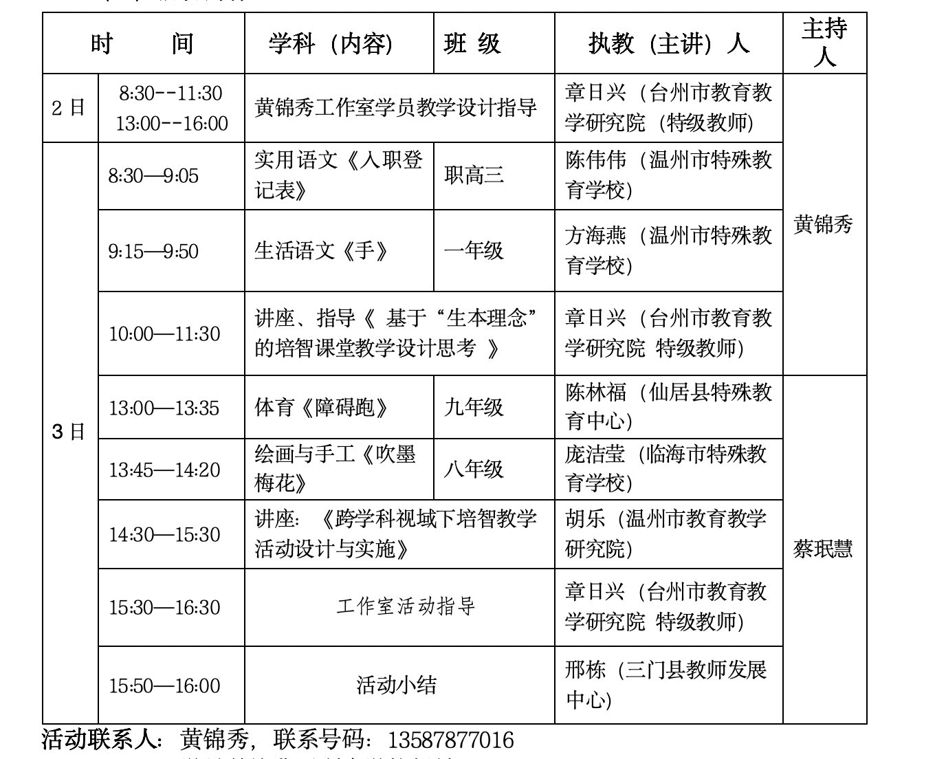 关于举行温州市黄锦秀“名师送教”工作室第13次活动的通知